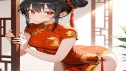 赤いチャイナ服を着た女の子と・・・|d_751536|墨染めの筆跡